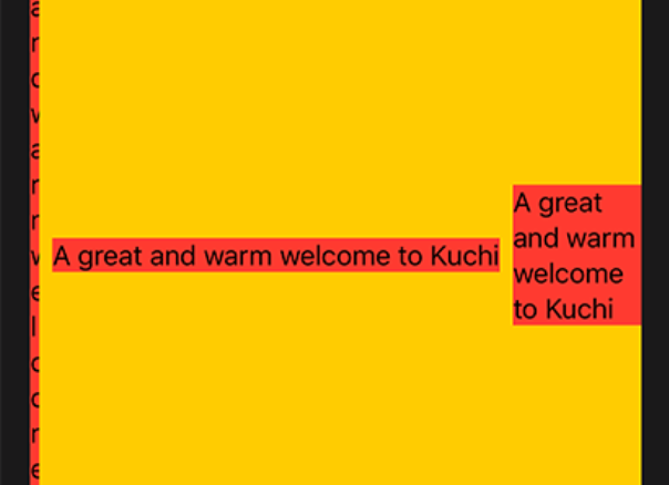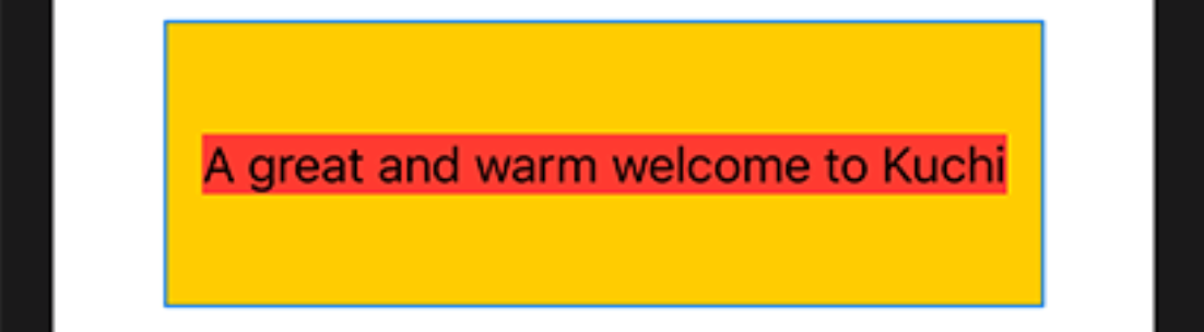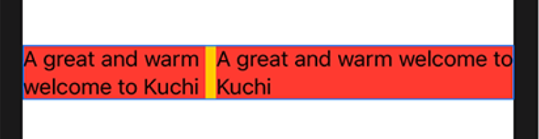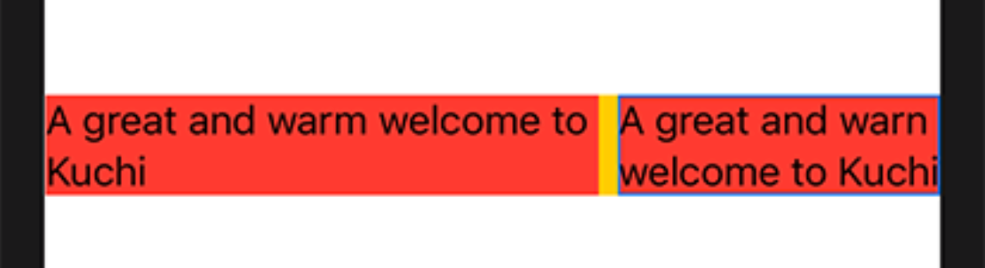 HStack { Text("A great and warm welcome to Kuchi") .background(Color.red) Text("A great and warm welcome to Kuchi") .background(Color.red) } .background(Color.yellow)