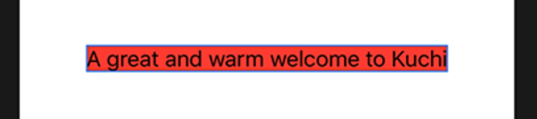 Text("A great and warm welcome to Kuchi") .background(Color.red) Text("A great and warn welcome to Kuchi") // <- Replace `m` with `n` in `warm` .background(Color.red)