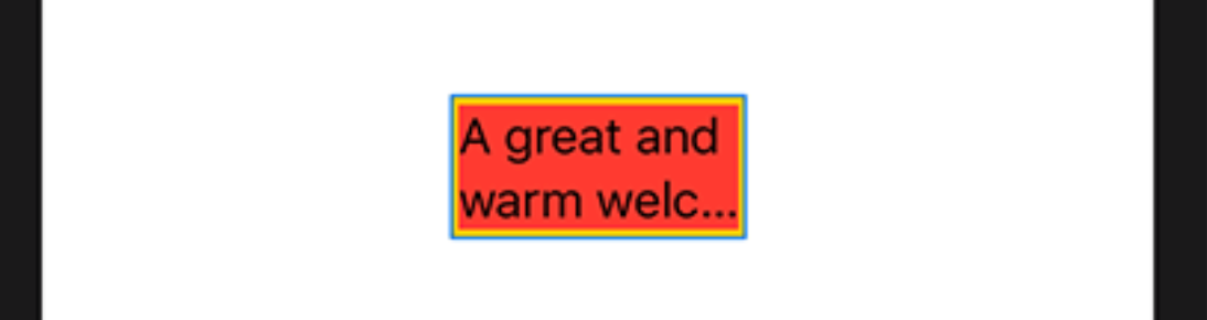 Text("A great and warm welcome to Kuchi") .background(Color.red) .frame(width: 100, height: 50, alignment: .center) .minimumScaleFactor(0.5) .background(Color.yellow)