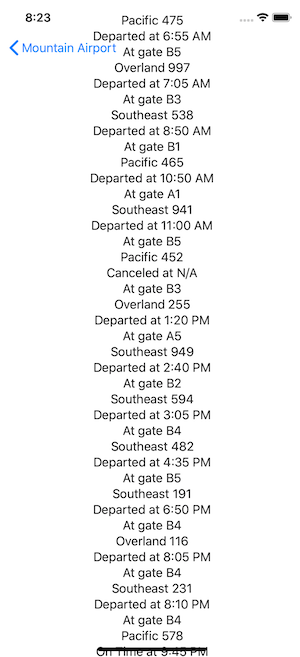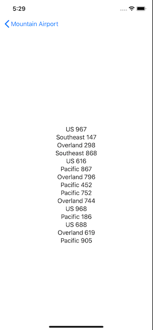 VStack { Text(boardName) .font(.title) List(flightData) { flight in Text("\(flight.airline) \(flight.number)") } }