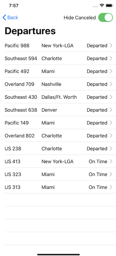 List(flightData) { flight in NavigationLink(destination: FlightBoardInformation(flight: flight)) { FlightRow(flight: flight) } } .navigationBarTitle(boardName)