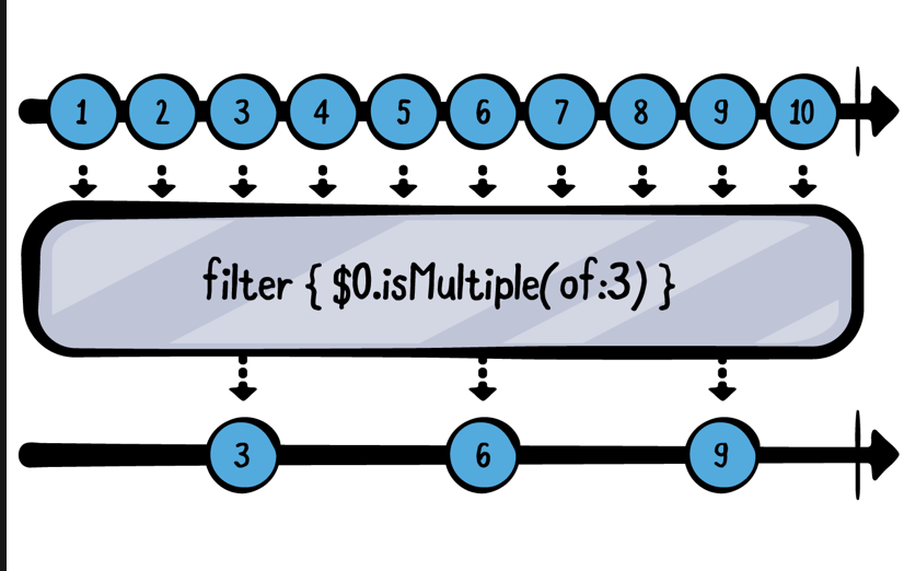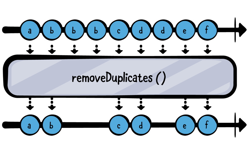 let numbers = (1...10).publisher numbers .filter { $0.isMultiple(of: 3) } .sink(receiveValue: { n in print("\(n) is a multiple of 3!") }) .store(in: &subscriptions)3 is a multiple of 3! 6 is a multiple of 3! 9 is a multiple of 3!removeDuplicates()